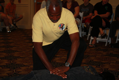 GM Martin about to demonstrate the healing power of Mimchi on two people with moderate to severe back problems.